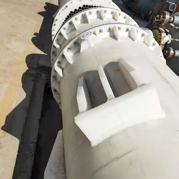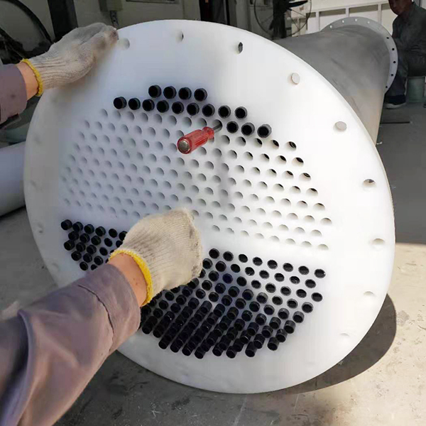冷凝器主(zhǔ)要用於吸(xī)收(shōu)HCL氣體生產鹽酸,亦可用於HF、SO2、NH3、P2O5、H2S等易溶腐蝕(shí)性(xìng)氣體的吸收。此外,還(hái)可用作中低沸點的腐(fǔ)蝕性介質的降膜蒸發(fā)設備。