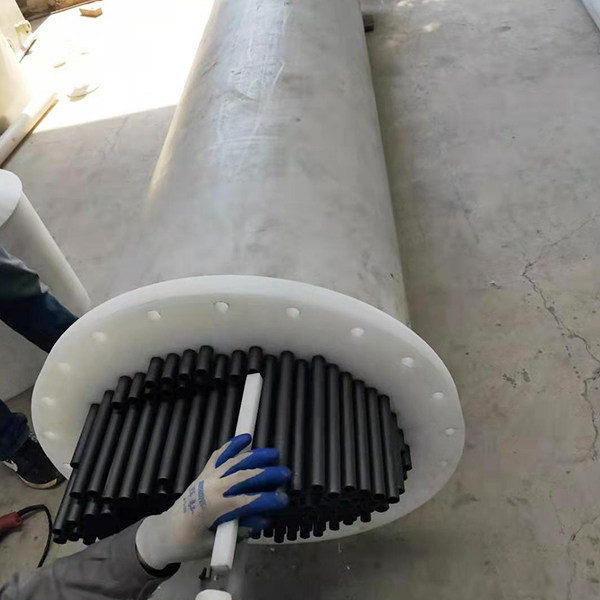 降膜吸收(shōu)器主要用於吸收HCL氣體生產鹽酸,亦(yì)可用於HF、SO2、NH3、P2O5、H2S等易溶腐蝕性氣體的吸收。此外,還可用(yòng)作中低沸點的腐(fǔ)蝕性介質的降膜蒸發設備。